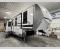 The whole family will love camping in this spacious fifth wheel! There are four slide outs, two bedrooms, plus two full baths, one of which is located in the rear master bedroom. A custom queen bed and dual wardrobes are also found in the master, while a custom king bed is found in the front private bedroom. And the loft with bunk mats can be used for additional sleeping or storage space! The chef of your group will find a full kitchen to cook meals, including ample counter space and a 16-cu. ft. 12V refrigerator and hidden storage behind the 50" TV for snacks or movies. The theater seating with cup holders provides a comfy place to relax each day, and the kitchen island with chairs will be perfect for dining space!